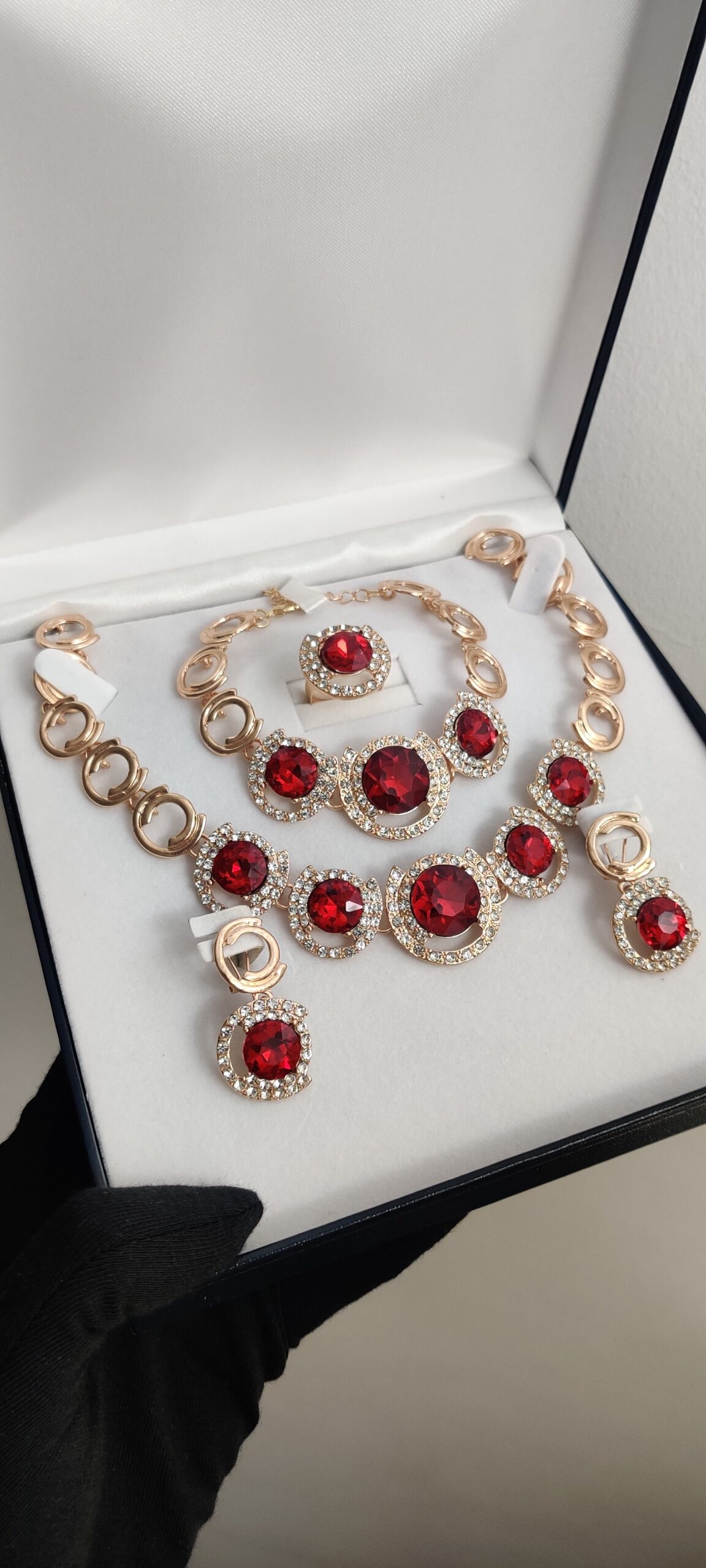 Parure « Appeal » en plaqué or avec pierres rouges resplendissantes.